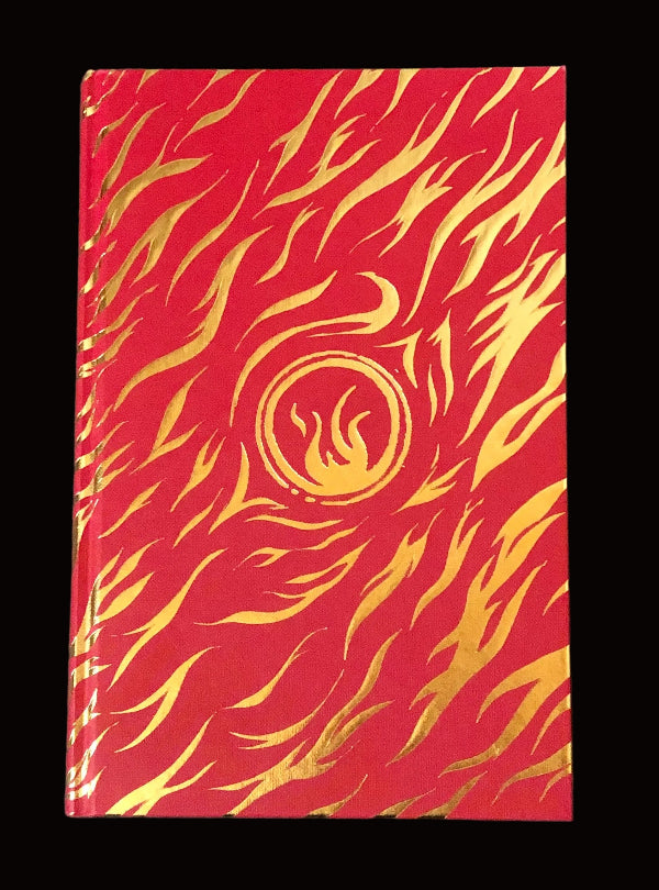 The "Signed Exclusive Edition" distributed by the UK High Street bookstore Waterstones, with their (removable) sticker to the front panel of the dustjacket. With red coloured edges and endpapers and decorated covers.